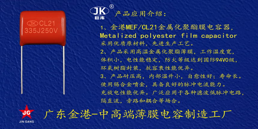 産品(pǐn)作用: 廣(guang)泛應用(yong)于各種(zhǒng)隔直流(liú)濾波,低(di)脈沖電(dian)路,旁路(lu)和耦合(he)等場合(he)。